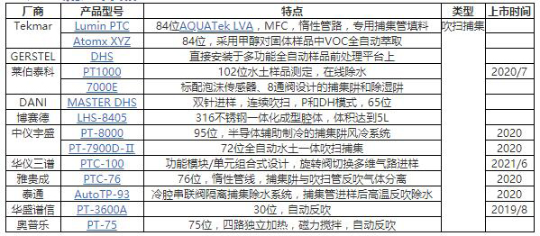 主流吹掃捕集/動態(tài)頂空系統(tǒng)匯總(供參考不分先后)