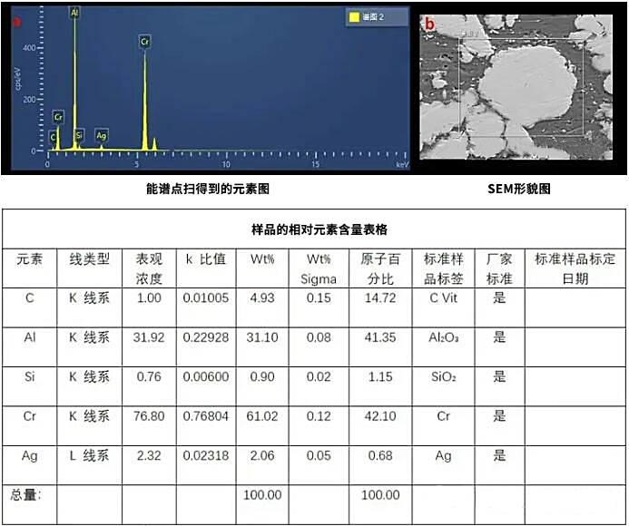 測試樣品的點分析結果圖