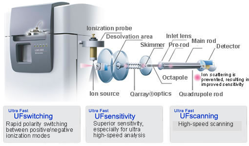 LCMS-2020通過以下特點(diǎn),匹配高速LC分析:-- UFswitching(高速正/負(fù)離子切換)